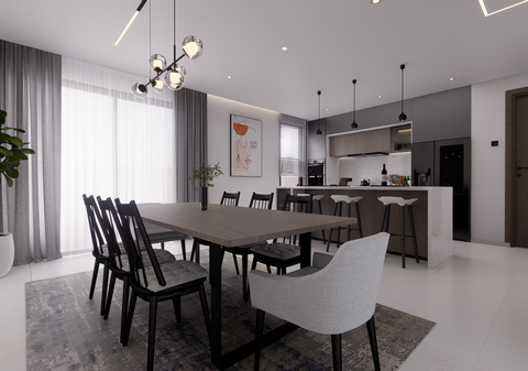 Experience the breathtaking elegance of our Sevilla Luxury Three-Bedroom Home. This sophisticated property features open-concept living, a charming outdoor patio, and a stunning front view with parking space for up to four cars.